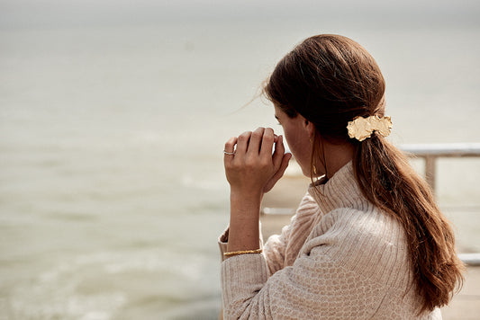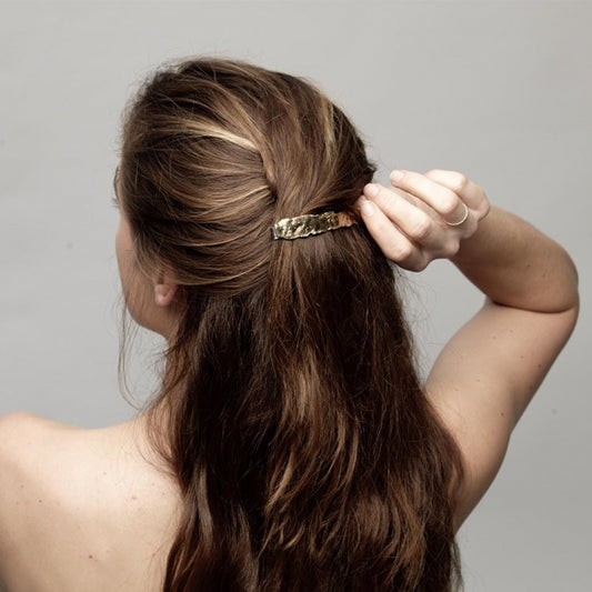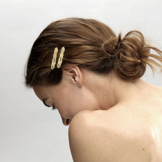 In true DB style, our hair accessories have fluid lines that curl and flow. Part of the Oceanus collection, the hair clips, grips and hair ties have forms reminiscent of waves tumbling and breaking, they are bold, feminine and elegant.