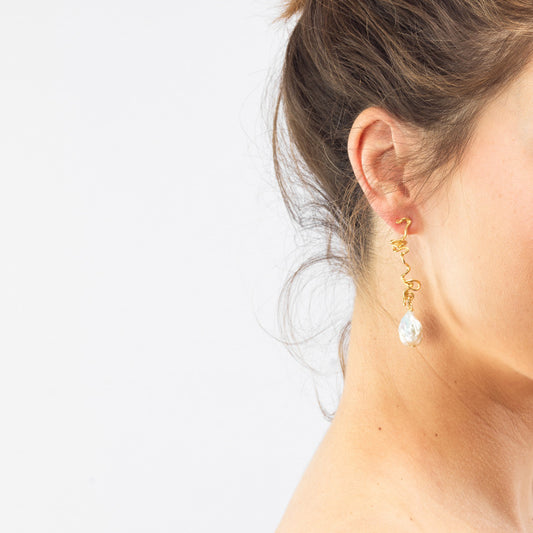 Gorgeously irregular baroque pearls are paired with the fluid sensuality of textured gold in rings, necklaces, earrings and lapel pins.