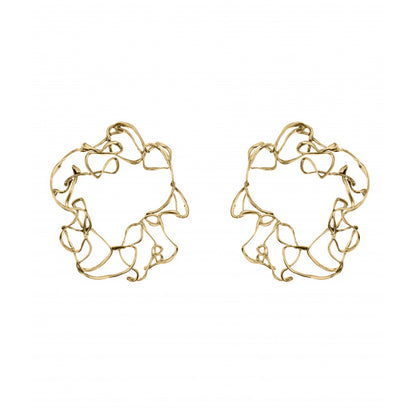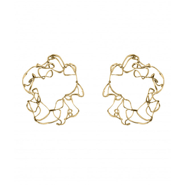 These Amara handmade intertwining stud earrings are crafted in our London studio, through the process of lost wax casting. Make a real statement when wearing these Large Amara stud earrings. The flowing, intertwining lines are made from 24ct gold plated Sterling silver. Although bold in size, they are very light to wear and have a wonderful airy feel. They measure 7 cms x 6 cms.