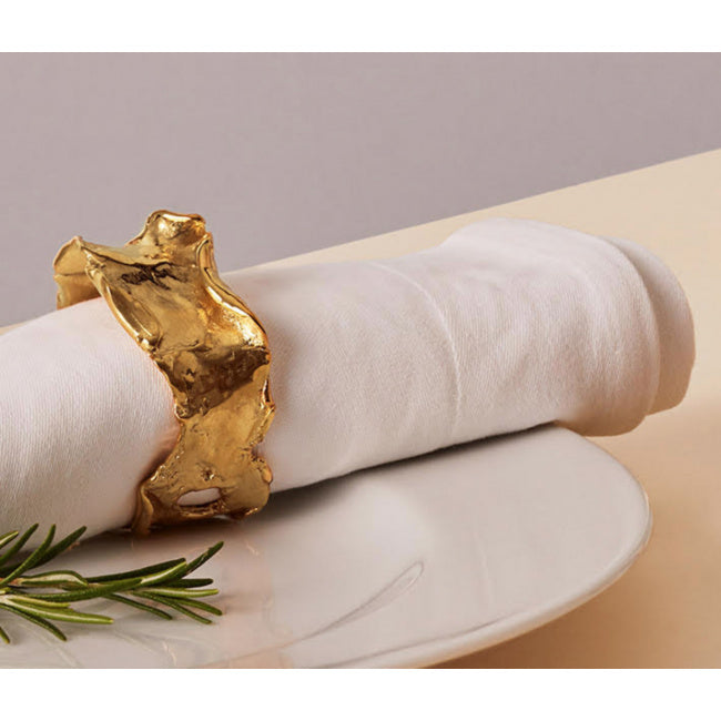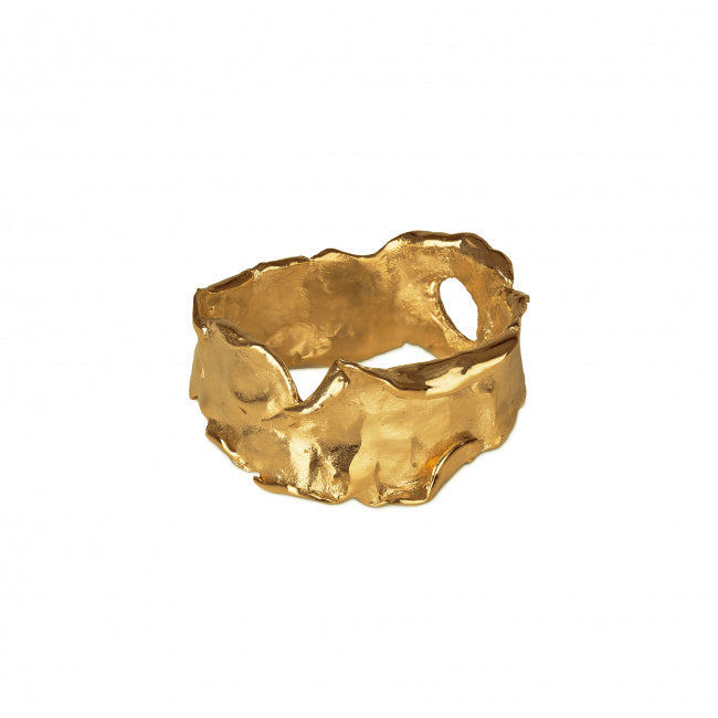 This gold napkin ring is created in our London studio through the process of lost wax casting from 18 carat gold plated brass. Each piece is hand polished to create a high shine and measures 2cm at it's widest part. The napkin ring has a tactile elegant form, simple but impactful.