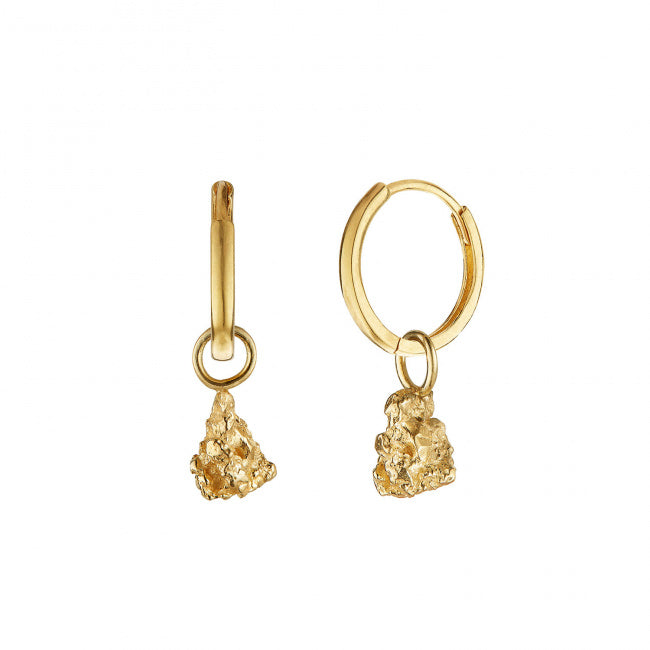 The tiny nuggets hanging from these hoop earrings are created from recycled 9 ct gold in our London studio through the process of lost wax casting, the earrings measure 19mm.