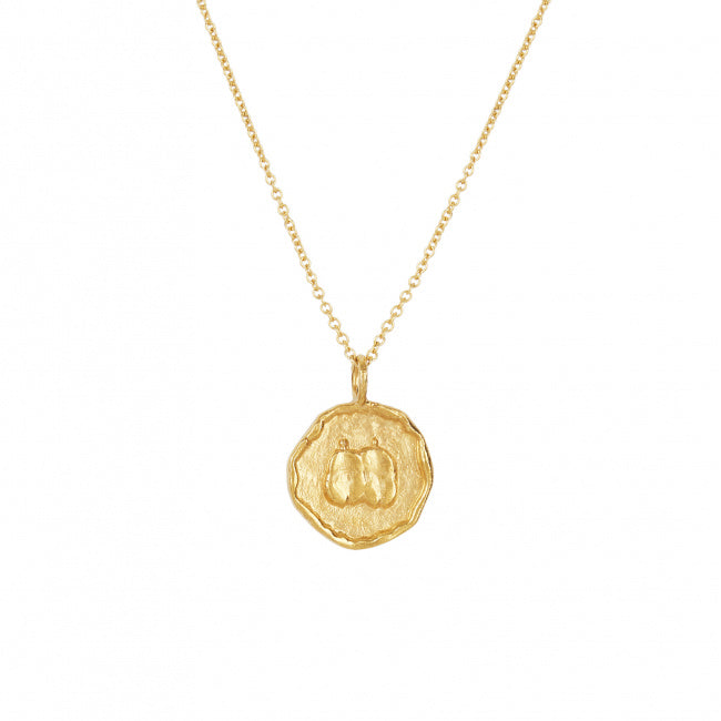 As part of the "Wobbly Bits" collaboration between French artist Laetitia Rouget and Deborah Blyth, this necklace is crafted in our London studio through the process of lost wax casting. The pendant measures 15mm and is made from 18 carat gold plated recycled brass, it hangs from a gold filled adjustable 16/18 inch chain